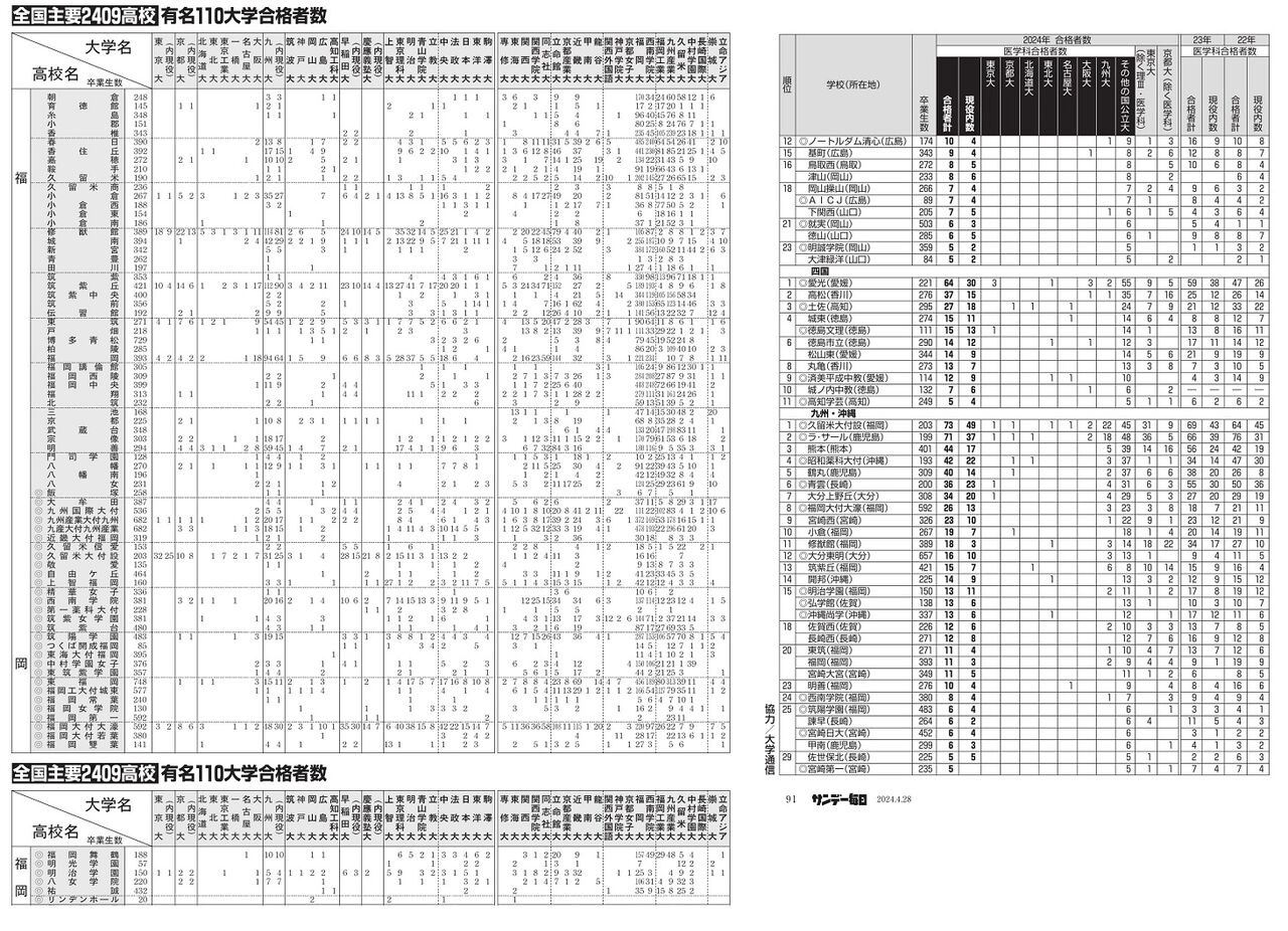 久留米大附設 卒業生203 東大32 京大10 国医73 九大31(医22)